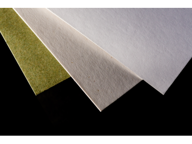 Přírodní papír vyrobený z 30% konopných vláken, z části z recyklovaného materiálu a z části z certifikovaných původních vláken.