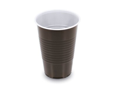 plast; 200 ml; průměr 70 mm; vně hnědý; uvnitř bílý