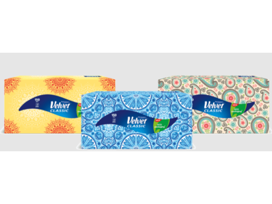 Jemné kapesníky Velvet Classic jsou osvědčeným pomocníkem v jakékoli situaci. Osvědčí se při líčení či odličování, stejně jako při častém otírání nosu. Krabičky s přírodním designem se stanou decentní dekorací jakéhokoli interiéru.