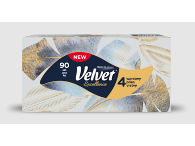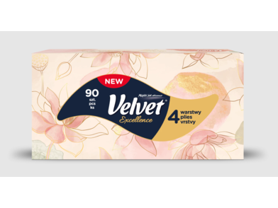 Díky moderní výrobní technologii jsou praktické krabičky Velvet Excellence až po okraj vyplněné hebkostí! Každý balíček obsahuje 90 ks silných a savých kapesníků, které díky čtyřem hedvábně jemným vrstvám vydrží opravdu dlouho. Produkt využijete nejen při nachlazení nebo alergii, ale také k osušení mokrých rukou, otření lehkých nečistot nebo osvěžení make-upu. Hodí se mít je stále po ruce!