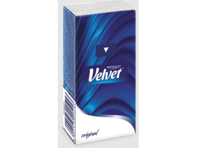 Jemné hygienické kapesníky Velvet Original se skládají ze čtyř vrstev měkkého papíru. Kombinace pěti elegantně sladěných grafických vzorů s klipem, který se pohodlně otvírá, získá uznání i u těch nejnáročnějších zákazníků, kteří si cení profesionální vzhled. Nové kapesníky Original mají výjimečný, jemný vzor na okraji kapesníku s motivem květin, díky čemu je kapesník ještě měkčí. Výrobek má atest PZH.