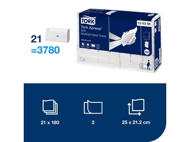 Vytvořte příjemné toalety pro své hosty s těmito jemnými bílými papírovými ručníky. Díky své komfortní textuře a vysoké savosti se ruce rychle a šetrně usuší. Tyto ručníky mají ekonomickou velikost, která je ideální pro zdravotnická zařízení, výrobní, průmyslové a vzdělávací instituce. Maximalizujte hygienu a minimalizujte odpad spojením s dávkovačem Tork Xpress®, který používá dávkování jednoho ručníku najednou, což zajišťuje, že uživatelé se dotknou a vezmou pouze tolik ručníků, kolik potřebují.