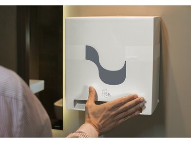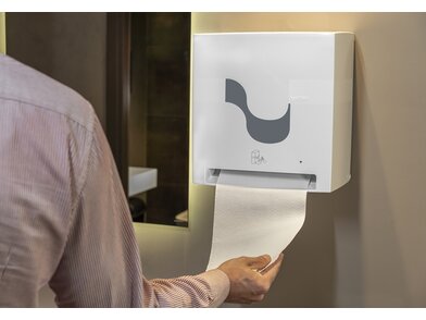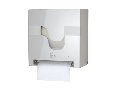 Dávkovač umožňuje hygienické a efektivní dávkování ručníků jedním kusem — uživatel se dotýká pouze svého útržku, čímž se minimalizuje riziko křížové kontaminace.