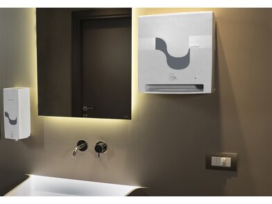 Senzorově ovládaný bezdotykový dávkovač papírových ručníků v roli typu E-Control.