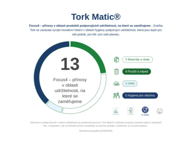 Tork Matic® automatický zásobník na ručníky v roli v provedení Elevation zajistí, že si vaši hosté dokonale usuší ruce, aniž by se ho museli dotknout. Zásobníky Tork Elevation se vyznačují funkčním, moderním designem, který na vaše hosty udělá trvalý dojem.