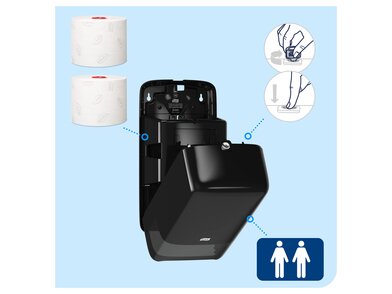 - Moderní dvojitý dispenzor pro toalety se střední až vysokou frekvencí použití