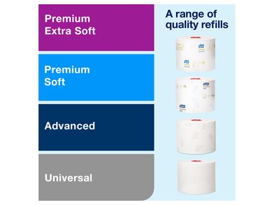 Využijte menší prostor v toaletách se střední až vysokou frekvencí použití díky kompaktnímu dispenzoru Tork Twin Mid-size. Díky vysoké kapacitě dávkovače se toaletní papír v rolích rychle nevyčerpá. Na podlaze nezůstává žádný odpad, protože prázdné dutinky ...
