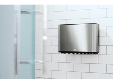 Vytvořte prémiový zážitek z používání toalety s naším dávkovačem Tork Mini Jumbo Toilet Roll. Tento moderní dávkovač z nerezové oceli má elegantní vzhled s povrchovou úpravou proti otiskům prstů, což šetří čas při údržbě. Když role nejsou zcela spotřebovány, ...