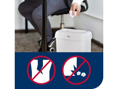Udržujte koše v každém prostoru čisté a maximálně hygienické s našimi Tork 20L sáčky na odpadky. Personál může rychle vyprázdnit a znovu naplnit odpadkové a skladovací koše díky našim snadno použitelným rolím, což zajišťuje plynulý průběh údržby a čištění. Funkce svařovaného záhybu také snižuje riziko trhání a vylití při manipulaci s odpadem. Navíc při výběru tohoto sáčku děláte udržitelnou volbu, protože je vyroben ze 33 % recyklovaných materiálů.