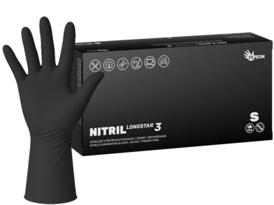 Rukavice NITRIL LONGSTAR3 100 ks, nepudrové, černé S