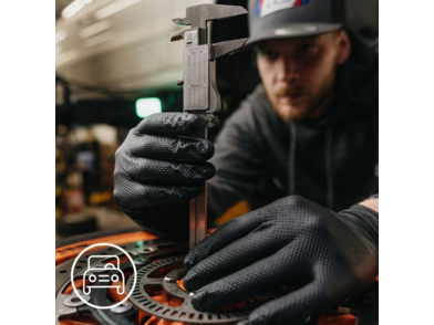 Materiál nitrilových rukavic DIAMOND 3 dosahuje až 0,25 mm tloušťky a poskytuje tím odpovídající ochranu při práci. Díky své tloušťce mají rukavice skvělou odolnost proti propichu.