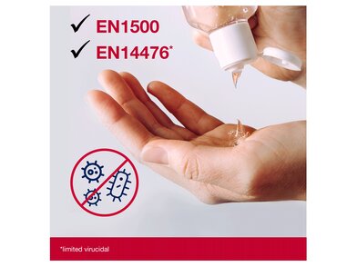 Zlepšete hygienu rukou na cestách s naším kapesním gelem na dezinfekci rukou. Speciálně formulován pro časté použití, bez lepivých zbytků, je to naše nejúčinnější formula gelového dezinfekčního prostředku. Obsahuje 80 % denaturovaného alkoholu (w/w) a je účinný proti všem obaleným virům, zároveň splňuje požadavky na dezinfekci v operačních sálech. Tento gel na dezinfekci rukou je také zvlhčující a pečuje o pokožku rukou. Používejte biocidní produkty bezpečně. Před použitím si vždy přečtěte etiketu a informace o produktu.