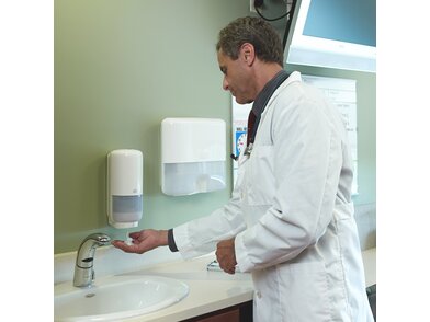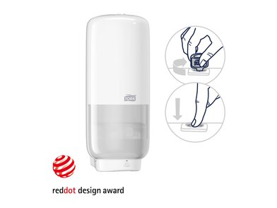 Tento dispenzor vám pomůže udělat dobrý dojem na vaše hosty a lze jej použít s širokou škálou produktů Tork, jako jsou mýdla, dezinfekce a krémy v uzavřených lahvích. Je certifikován jako snadno použitelný a nabízí bezdotykové dávkování, což zajišťuje dobrou hygienu ...