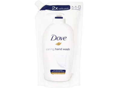 Dove (Original) – 500 ml náplň tekutého mýdla s ¼ hydratačního krému pro jemné a ochranné mytí rukou.