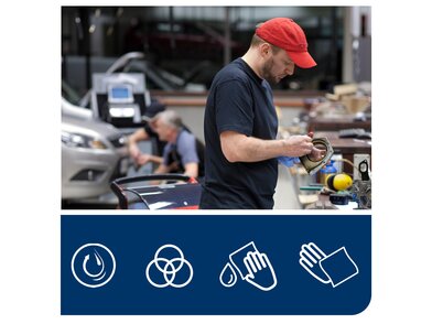 Čistěte povrchy a zároveň chraňte ruce před teplem a kovovými úlomky s naším extra silným Tork Heavy Duty Wiping Paper. Tento 3-vrstvý průmyslový papírový rolek se snadno vypořádá s náročnými látkami, jako je olej a mastnota, díky své vysoké absorpční schopnosti. Zbavte se problémů s trháním papíru – náš opakovaně použitelný design zůstává silný i při namočení, čímž snižujete odpad. Používejte tento papír v bezpečných a spolehlivých dávkovačích Tork Floor nebo Wall Stand, nebo v Tork Maxi Centrefeed Dispensers. Jeho jednoruké dávkování zajišťuje efektivní použití.