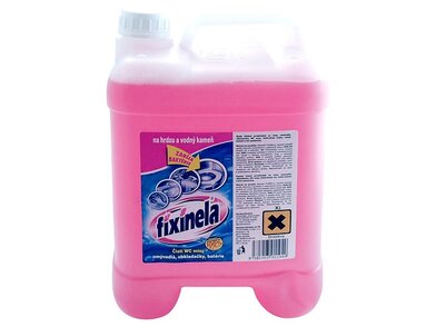 Fixinela - kyselý čistící prostředek na vany, umyvadla, obkládačky, WC mísy. Odstraňuje rez, vodní kámen a jiné usazeniny.