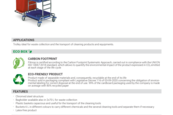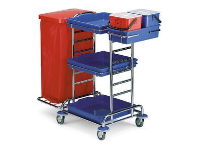 Konstrukce z chromované oceli zajišťuje vysokou pevnost a dlouhou životnost, zatímco prvky z kopolymeru polypropylenu dodávají vozíku lehkost, odolnost proti chemikáliím a snadnou údržbu. Vozík je vhodný pro použití v profesionálních provozech, jako jsou hotely, zdravotnická zařízení, kancelářské budovy i průmyslové objekty.