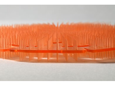 - vyššími bodlinkami na obou stranách, které z jedné strany zabraňují rozstřiku tekutin a z druhé strany umožňují snad odtok tekutin, navíc bodlinky zvětšují vonnou plochu