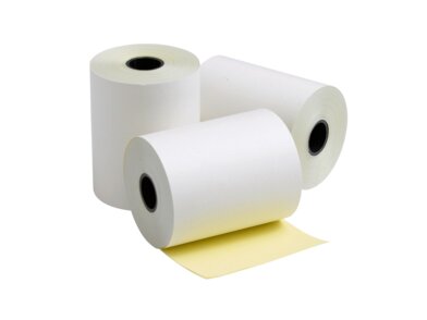 Kotoučky s kopií (1+1, bílá/žlutá) jsou vyrobeny ze samopropisujícího papíru (NCR), vrchní vrstva CB spodní vrstva CF. Kvalita reacto®, výrobce Koehler (Německo). Papírový „obyčejný-offsetový“ kotouček určených pro jehličkové pokladní tiskárny účtenek, ale také papírové kotoučky pro klasické registrační pokladny. Minimální prašnost papíru, z kterého je vyroben.