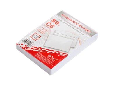 Obálky Harmanec-Kuvert pro každodenní použití ve standardní kvalitě z bílého 80 g papíru ve formátu C6 - balení v krabici á 500 ks.