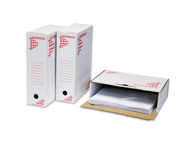 Archivační krabice A4 z pevné třívrstvé lepenky.