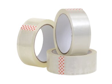 Nejpoužívanější lepicí pásky, použití: lepení klopových krabic, papíru, bublinkové folie a dalšího.