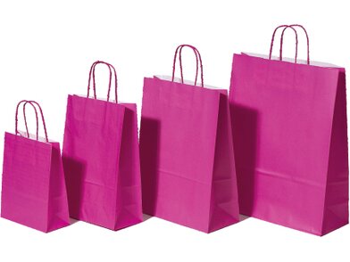 Růžová dárková papírová taška s krouceným uchem. Hodí se také do každého obchodu s kosmetikou, módou a dárky.