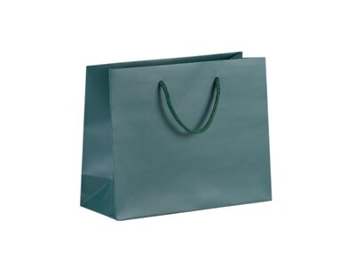 Luxusní zelená dárková papírová taška s krouceným uchem va barvě tašky.