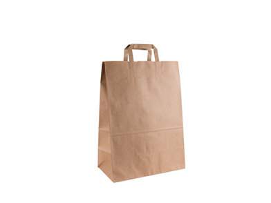 Papírové tašky s plochým uchem v mnoha provedeních standardních rozměrů, včetně možnosti potisku od jedné barvy až plnobarevně na přání zákazníka. Papírové tašky jsou vyrobené z hnědého kraftového papíru. Mají vysokou pevnost a zároveň jsou šetrné k životnímu prostředí.
