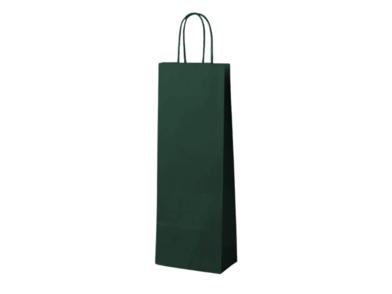 Papírová taška NA VÍNO TMAVĚ ZELENÁ s uchem z kroucené papírové šňůry jsou vyrobeny z kraftového papíru. Tento typ tašek je vhodný pro darování a odnos lahví.