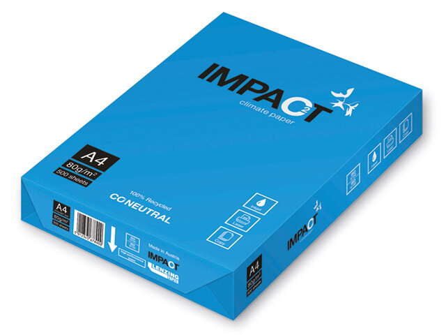 Impact Natural je nenatíraný ofsetový papír, povrchově klížený, vyrobený ze 100% recyklovaných vláken.